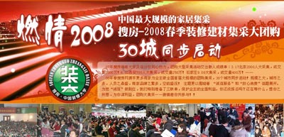 2008年3月,作為中國(guó)家居第一網(wǎng)絡(luò)媒體門戶的搜房家居網(wǎng)再度揮出重拳,于全國(guó)30個(gè)城市同步舉行超大規(guī)模的網(wǎng)絡(luò)集采。本次集采吸引百萬網(wǎng)友關(guān)注、上千個(gè)品牌家居建材企業(yè)參與的同時(shí),全國(guó)近50家媒體給與關(guān)注和報(bào)道也成為一大亮點(diǎn)。 裝飾裝修