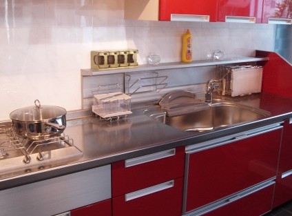 相對(duì)來說,不銹鋼臺(tái)面沒有其他兩種臺(tái)面用得多,但它光潔明亮,看起來比較有個(gè)性,各項(xiàng)性能還算可以,因此也受到一些年輕朋友的關(guān)注。以前生產(chǎn)技術(shù)達(dá)不到,在邊角處容易留有接縫,水滲到其中常會(huì)減少櫥柜使用壽命,但現(xiàn)在雅迪爾、佳飾、博洛尼等品牌已經(jīng)可以做到一體化無拼接縫的不銹鋼臺(tái)面,只是價(jià)格會(huì)貴些。