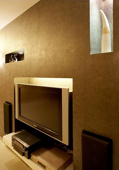 嵌在在墻壁里的老式音響,是業(yè)主結(jié)婚后家人送的禮物,有紀念價意義,不會舍丟棄,所以設(shè)計以外觀上做了些改變,雖然丟失了一些音效效果,但是同整個家居設(shè)計更加相符合。
