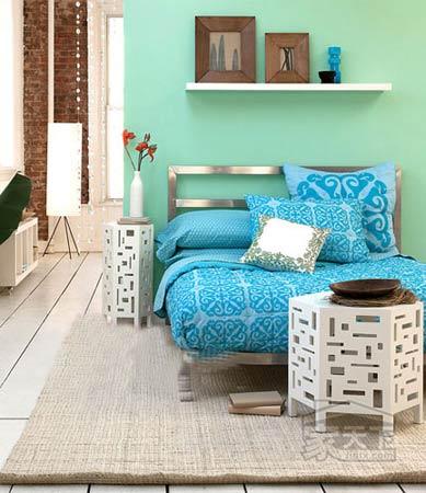 一成不變的采用同一顏色,感覺太單調(diào),在客廳,設(shè)計(jì)師巧妙的運(yùn)用深淺不一的藍(lán),來表現(xiàn)“海洋”主題,此外,設(shè)計(jì)師也盡量采用波浪線條,來加強(qiáng)視覺效果!