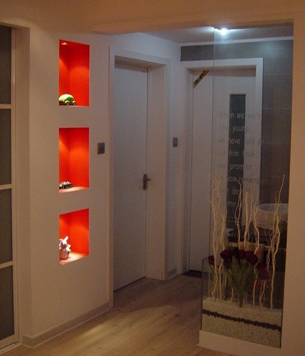 壁龕裝飾的重點(diǎn)是在墻洞的外沿四周,做出一種類似畫(huà)框的感覺(jué),通過(guò)各種不同形式的框來(lái)襯托洞內(nèi)虛空間的美,從而展示一種文化時(shí)尚。當(dāng)然也可在洞內(nèi)的墻面上做文章,也會(huì)產(chǎn)生某種新奇感。