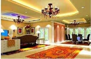 戶型資料:總面積400平方米,客廳為100平方米,分為三個功能區(qū):會客區(qū),繪畫區(qū),就餐區(qū)。
