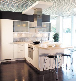 木質(zhì)、防火板、石材是櫥柜中的基本材質(zhì),在簡(jiǎn)約主義的陣營(yíng)中,更可見(jiàn)到后現(xiàn)代的新寵,如鋁、碳纖維、塑料、高密度玻璃等等,豐富了廚房世界的組合和諸多實(shí)用功能,如防水、耐刮、清爽、透光等等。