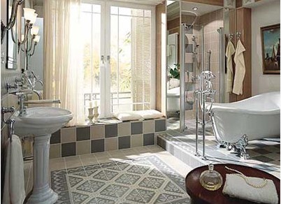 概要: 當(dāng)秋天的腳步漸行漸近,我們?cè)诟姓僦谢貧w自然的無(wú)限風(fēng)情。也許正因了明媚的陽(yáng)光和久違了的藍(lán)天,我們的家居生活也變得異常多彩,正如那一向魅惑無(wú)邊的衛(wèi)浴空間也開始變得內(nèi)涵深刻起來(lái)。今天,我們就引領(lǐng)您欣賞一下站在潮尖上的奢華衛(wèi)浴?! 」诺渖萑A 仿天然大理石的古典質(zhì)感墻磚,纏花圍繞的腰線令空間充滿濃郁的古典藝術(shù)氣質(zhì)。
