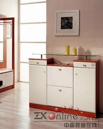 常見的鞋柜主要有三種。一種是抽屜式鞋柜,通常有兩到三層,每層里面有鋼絲作隔離,可放二十幾雙鞋。一種是門式鞋柜,常見的是四門的、三門的,這種通常有放傘的地方。還有一種是外表看起來像抽屜式的,但又不需要拖出來放鞋子,只需拉一下,整柜的鞋子就盡收眼底,它的妙處在于有兩根滑桿控制。 海裝潢網(wǎng)