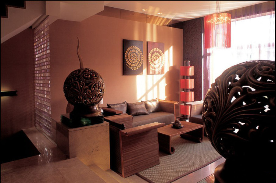 這個案例的套內(nèi)面積有280平,在定裝修風格的時候,業(yè)主同設計師都費了很多心思。居室憑湖臨風,有優(yōu)美的人造湖景,業(yè)主在討論風格定位時請設計師參考。根椐這樣一個自然環(huán)境設計師最終確定了以東南亞風格為主題的設計定位,此類風格的成功設計案例應該說并不鮮見。如何把簡約時尚的家居概念溶入設計中并能體現(xiàn)其特點是本案的設計重點。