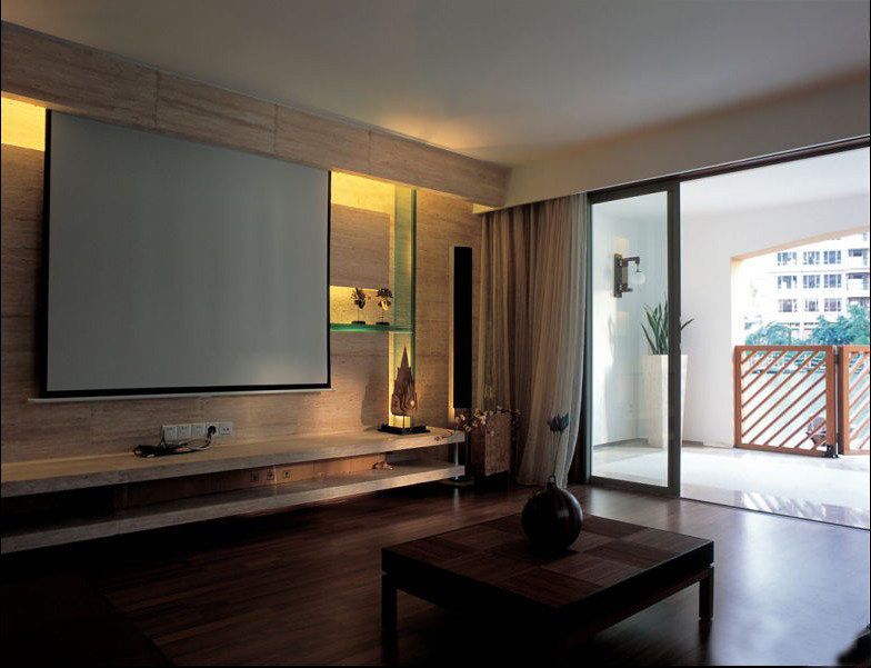 客廳根據(jù)業(yè)主愛好裝的是投影,燈光的設計,讓人覺得又該是哪部大片上印。
