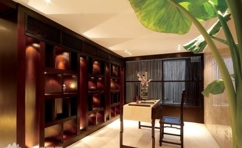 書房的布置更能體現(xiàn)主人的個(gè)性和內(nèi)涵,其中大有學(xué)問。書房的墻面、天花板色調(diào)應(yīng)選用典雅、明凈、柔和的淺色,如淡藍(lán)色、淺米色、淺綠色。地面應(yīng)選用木地板或地毯等材料,而墻面的材料最好選用壁紙、板材等吸音較好的材料,以取得書房寧靜的效果。