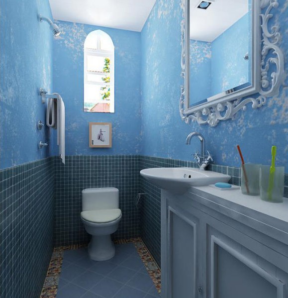 以藍(lán)白相間的手刷墻為白色,配以深色的馬賽克,黃色的邊線、藍(lán)色的地磚,色彩豐富而不做作。