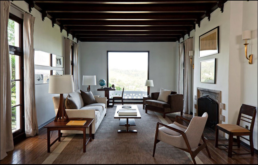 從沙發(fā)到燈飾、茶幾的線條都以簡潔為主,唯獨(dú)客廳的背景墻上的裝飾畫將我們帶回純真年代。