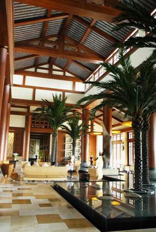 概要: 藍(lán)天、白云、碧海、白沙灘、陽光、高大的椰子樹林、茅草的遮陽亭是我們來到美麗三亞亞龍灣渡假區(qū)的最深的印象。這里得天獨(dú)厚優(yōu)美的自然風(fēng)景,讓來此渡假的旅人放下了身心的疲憊,重回了大自然的懷抱,而這里渡假酒店的設(shè)計(jì)也有著其獨(dú)特的休閑的、舒適的、開放的、自然的風(fēng)格。上海裝潢網(wǎng) 酒店的大堂空間多是高大而開敞式的,屋頂有高高的木梁裝飾,像間大木屋。