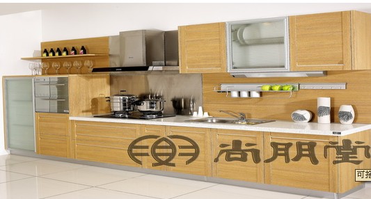 筆者了解到,實(shí)木制作的櫥柜門板,風(fēng)格多為古典型,通常價(jià)位較高。門框?yàn)閷?shí)木,以櫻桃木色、胡桃木色、橡木色為主。門芯大多為中密度板貼實(shí)木皮,制作中一般在實(shí)木表面做凹凸造型,外噴漆,從而保持了原木色且造型優(yōu)美。這樣可以保證實(shí)木的特殊視覺效果,邊框與芯板組合又可以保證門板強(qiáng)度。