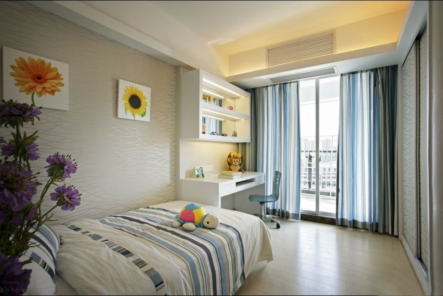 空間復(fù)合的同時(shí),功能也隨之復(fù)合了,體現(xiàn)出集工作、休息、娛樂(lè)為一體的強(qiáng)大的多功能性。兒童的房間,色彩淡雅清爽,可動(dòng)性非常多,不會(huì)拘于一格。