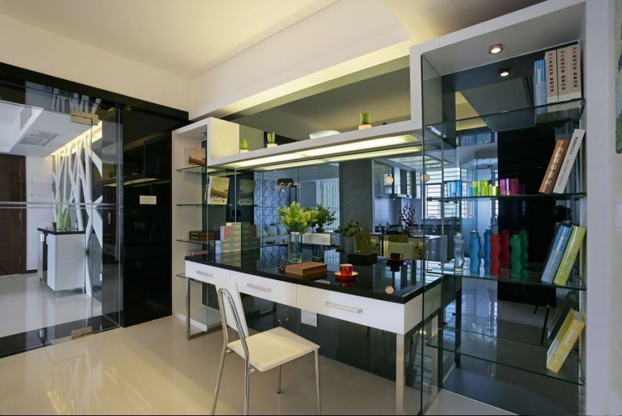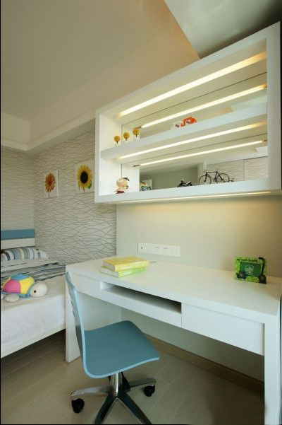 在典型的現(xiàn)代風(fēng)格設(shè)計(jì)中,裝飾的主題往往是窗外的風(fēng)景,或是一墻時(shí)尚的壁紙,或是一套漂亮的椅子,或是個(gè)性十足的飾品擺件。這樣的書(shū)桌,簡(jiǎn)潔方便且非常實(shí)用,擺放在臥室里非常適宜。