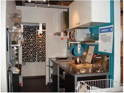 廚房的安排很緊湊,必要的料理和儲物功能都能達到。在使用中,臺面與灶臺、油煙機的清潔非常方便,洗滌、切菜和炒菜是分區(qū)域的,可以“一條龍”操作,很方便,頂柜柜門為上拉式,比較省力。