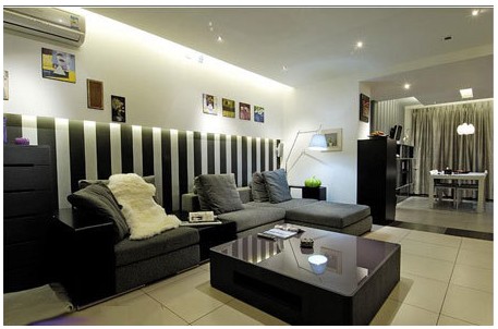小戶(hù)型的空間狹小曲折,很多人為了裝飾效果,突出區(qū)域感,會(huì)在不同的區(qū)域用不同的材質(zhì)與高度來(lái)加以分別,天花也往往與之呼應(yīng),這就造成了更加曲折的空間結(jié)構(gòu)和衍生出許多的“走廊”,造成視覺(jué)的阻礙與空間的浪費(fèi)。地面的顏色應(yīng)統(tǒng)一成明度較強(qiáng)而純度較低的色系,地面的色彩應(yīng)略重于家具的色彩,這樣才不會(huì)產(chǎn)生頭重腳輕的感覺(jué)。也可以用一些馬賽克、鵝卵石等做一點(diǎn)帶有導(dǎo)向性的玻打線(xiàn),打破沉悶的視覺(jué)效果。