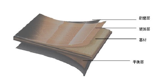 它也是三層壓制,表層是含有耐磨材料的三聚氰胺樹脂浸漬裝飾紙,中間層為中、高密度纖維板或刨花板,底層為浸漬酚醛樹脂的平衡紙。三層通過合成樹脂膠熱壓而成,此類地板的耐磨性與尺寸穩(wěn)定性較好。