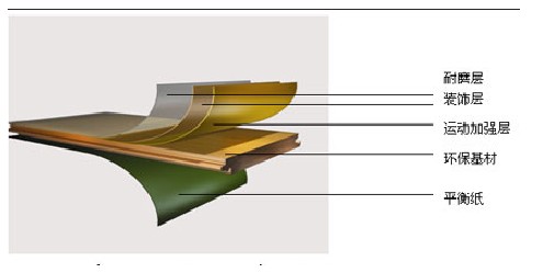 強化復(fù)合地板(浸漬紙層壓木質(zhì)地板)其結(jié)構(gòu):強化復(fù)合地板由四層結(jié)構(gòu)組成。