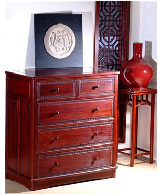 一件好的紅木家具除滿足使用功能外,還應(yīng)該是一件藝術(shù)品,在精神上給人一種藝術(shù)享受。因此,在購買紅木家具時,首先需考慮家具的造型,結(jié)構(gòu)上要科學(xué)合理,比例上要協(xié)調(diào)勻稱,否則,是不會好看的。紅木家具必須在整體的藝術(shù)造型、協(xié)調(diào)統(tǒng)一、精雕細(xì)琢之下,回歸木質(zhì)花紋原色,而欣賞紅木家具的整體工藝,應(yīng)從以下三方面著手:一是木工工藝:家具外觀端正、結(jié)構(gòu)嚴(yán)密、木榫接口緊密、無缺陷、無松脫,平面處要光滑平整,抽屜柜門等必須關(guān)合自如;二是雕刻工藝:雕刻圖案應(yīng)完整清晰、層次分明,線條均勻、優(yōu)美、和順一致,輪廓對稱、立體感強,表面光滑平整,圓順無波浪;三是油漆 工藝:家具表面漆層必須平整一致、不留痕,不要選一厚一薄的凹凸的漆層;看油漆時,用手一摸要光滑,無木孔及接口沉陷;注意家具底部、柜內(nèi)也要光滑,不得漏漆,否則容易爆裂;油漆顏色均勻,色澤光亮。