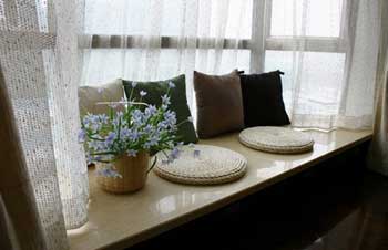 想被陽光照醒或享受星光的人士不妨試試。如果飄窗頗大,有兩三米長,一米寬的話,就可以把飄窗設計成一張小小的單人床!保留原有的大理石臺面,在采光玻璃(大多飄窗是三面采光)上掛上羅馬簾或普通垂簾,再在飄窗與臥室之間多加一道窗簾。不用的時候整個窗戶造型是浪漫的宮廷式垂簾,輕輕拉開,就是睡美人之床了。