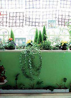 陽臺(tái)改造成一個(gè)五臟俱全的小花房其實(shí)很簡單,挑選些漂亮植物和親近自然的鐵藝家具就可以了,還可以選擇吊籃來盛裝葉莖垂下來的綠植。如果想在陽臺(tái)上搭一個(gè)玻璃棚,那么栽種的植物就要區(qū)分喜濕喜熱。如果陽臺(tái)上有一角要做儲(chǔ)藏室,那么那塊角落附近就不能種太多的植物,否則儲(chǔ)藏室里會(huì)有潮氣。