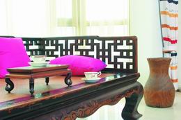 男主人李先生的職業(yè)可能是很多人并不熟悉的:藝術(shù)經(jīng)紀(jì)人。他成功地經(jīng)營著一家很有品位的畫廊,并以收藏舊家具、古董為樂趣。對藝術(shù)頗為執(zhí)著的他,在生活上可謂一絲不茍,家中各大小家具,雖并非全是名牌,但是每一件都是收藏品,都帶著獨特時光與文化的印記。