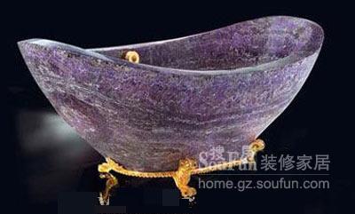 當(dāng)然有許多各種顏色的大理石浴缸,精致的雕刻和爪形足瓷器,但我從沒有看到這個(gè)金飾的純紫水晶浴缸。Baldi最新推出了這款極致奢侈的浴缸作為浴室的中心裝飾品。甚至還有許多您想象不到的配件,肥皂盒,沐浴露噴頭和轉(zhuǎn)筒。盡管網(wǎng)上沒有公布價(jià)格,但不難想象需要多大的代價(jià)擁有如此的“尤物”。