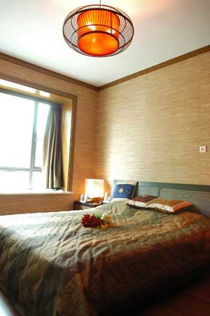 裝飾品的搭配對于風(fēng)格的完整也很重要,設(shè)計師特意挑選了石座人像臺燈、藤球燈、和傳統(tǒng)圖騰裝飾畫。這些都具有明顯的中華民族特征,是本次設(shè)計風(fēng)格的完美點化物。